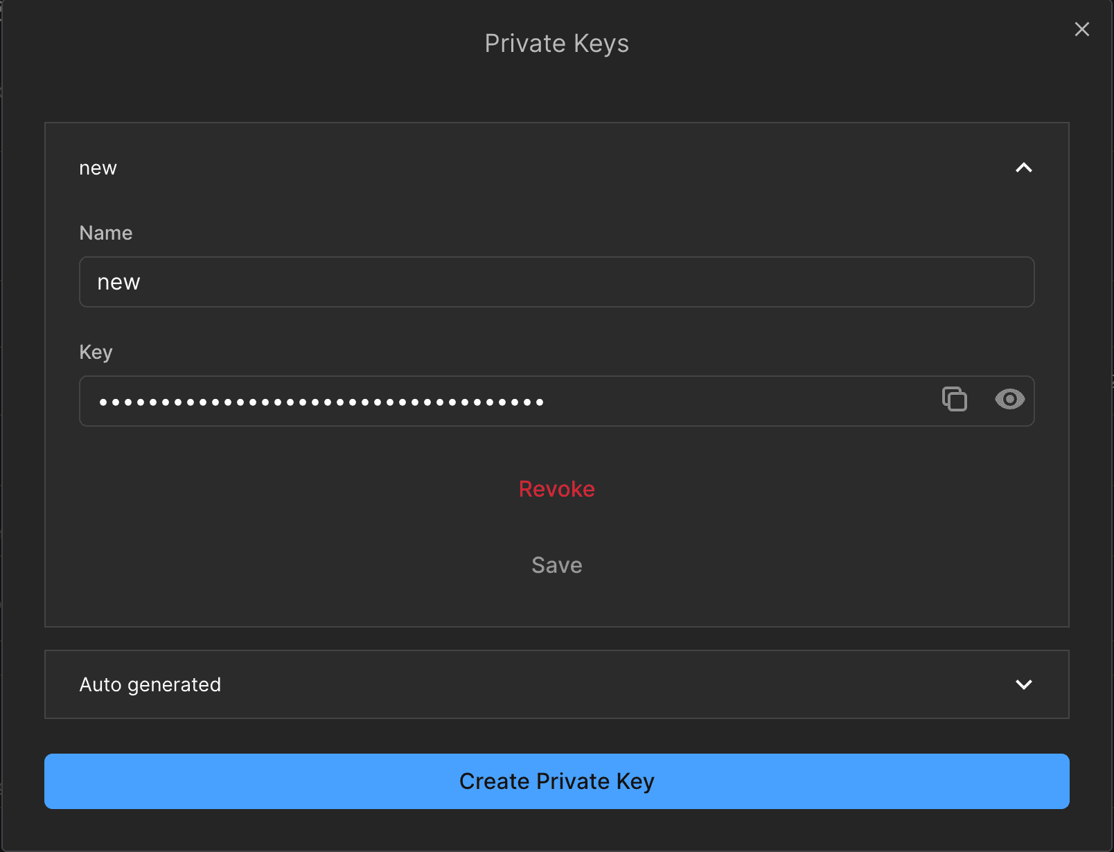 - Under Space Settings, find the Private Keys row and click the Edit button.