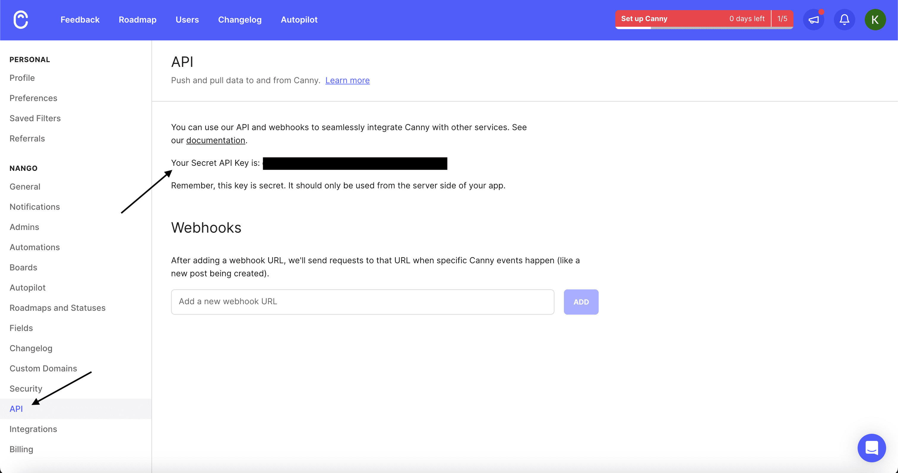 1. API Key - A key that grants Nango permission to interact with Canny’s APIs resources and services.