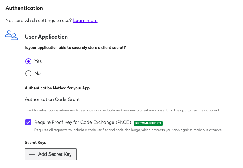 integration keyis actually the ‘client ID’. Also, you’ll need to add a ‘secret key’ when creating your app.