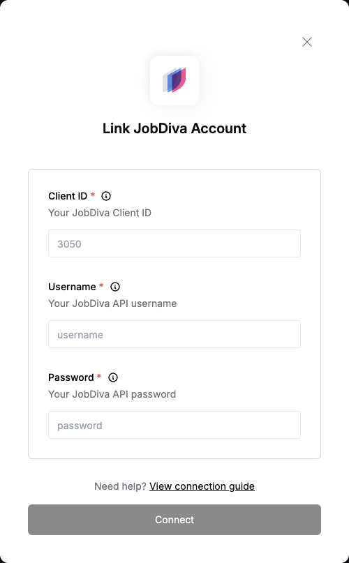3. Password - The password for your JobDiva API user.