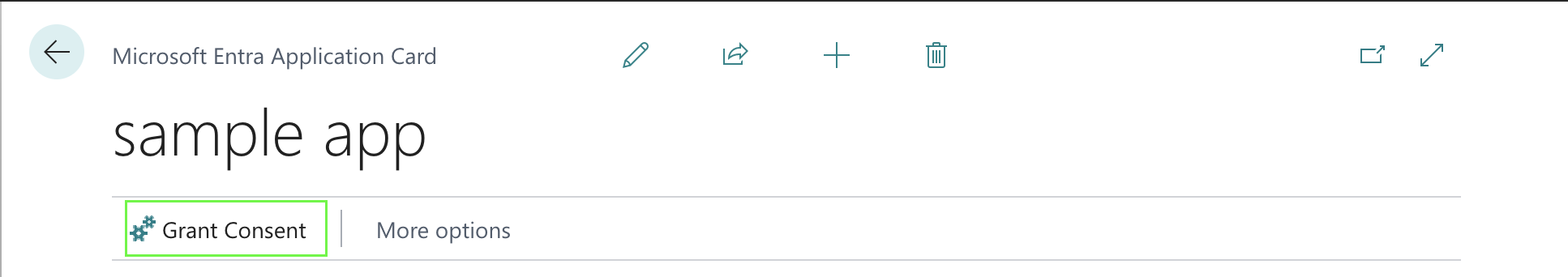 - Login to your Business Central client, search for Microsoft Entra Applications, open the page, and click New.