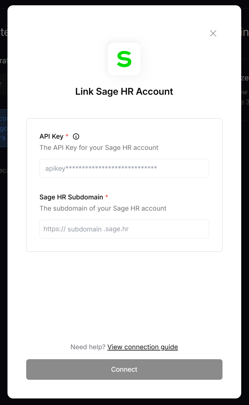 1. Subdomain - The subdomain of your Sage HR account (e.g. company.sage.hr)